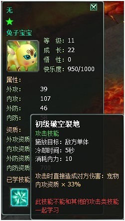 3、优化宠物浮动提示框,聊天框点击打开的宠物信息框里可以查看宠物技能